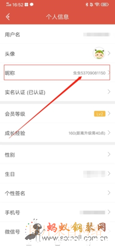 2、在个人信息页面,找到并点击“昵称”;
