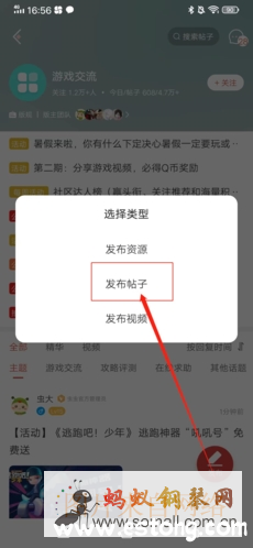 3、在弹出窗口中点击“发布帖子”;