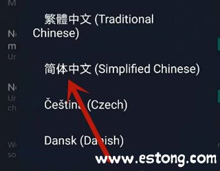 5、最后在打开的下拉选项中,点击简体中文,然后就设置好中文了。