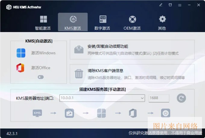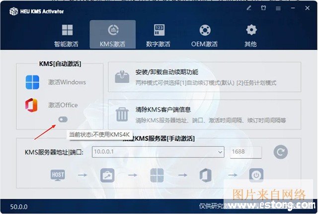 3、kms激活:支持激活windows,激活office,自动续期;